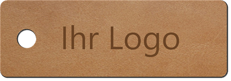 Zusammen kreieren wir Ihr gewünschtes Mass und Form der Naturlederetikette mit Ihrem eigenen Firmenlogo!